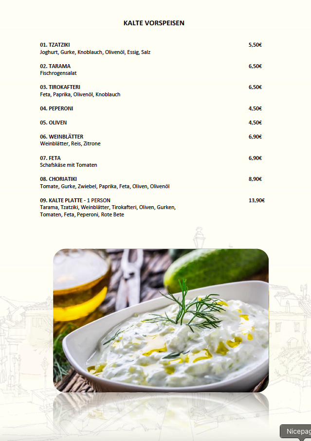 Lassen Sie sich von unserer Speisekarte inspirieren und entdecken Sie die Vielfalt der mediterranen Küche.